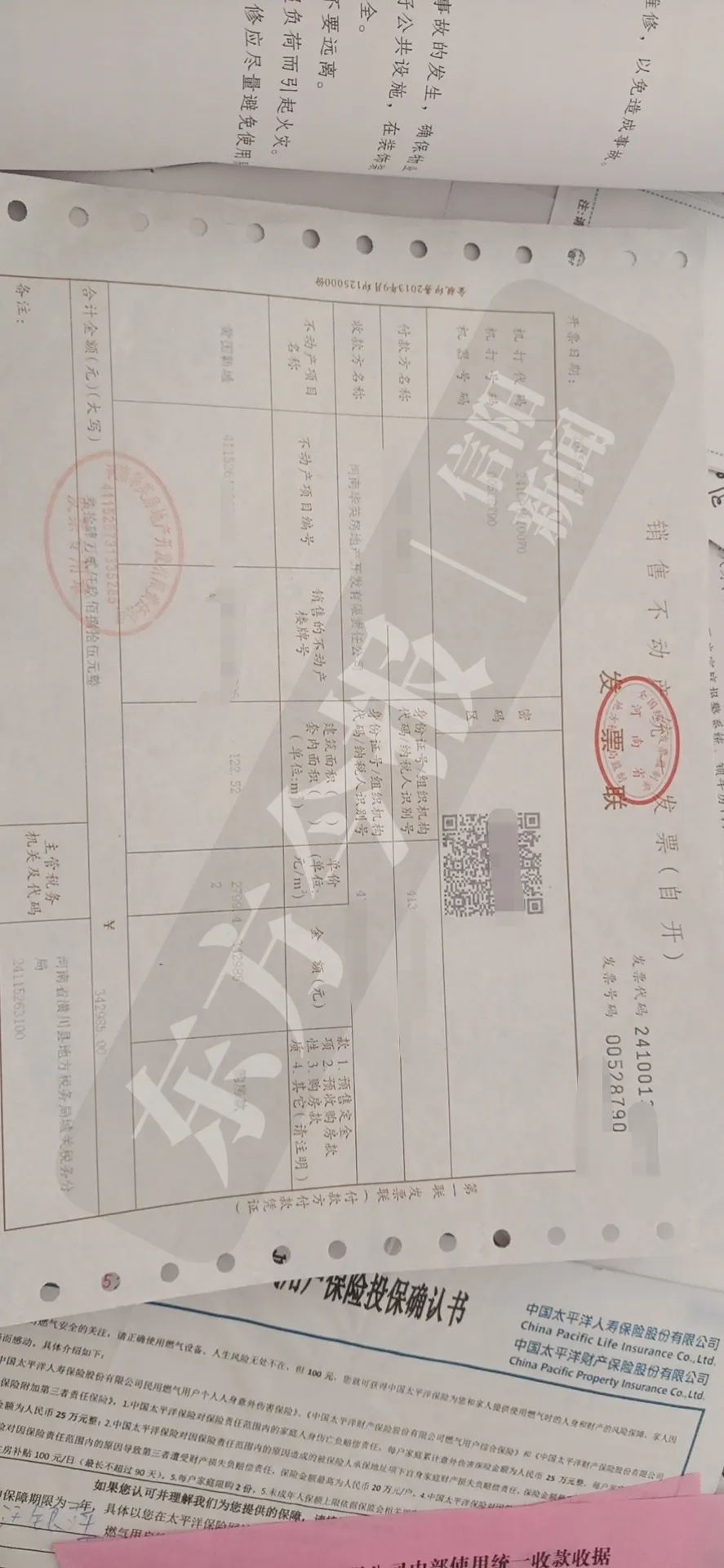(华英地产对契税和房屋维修基金代收票据)