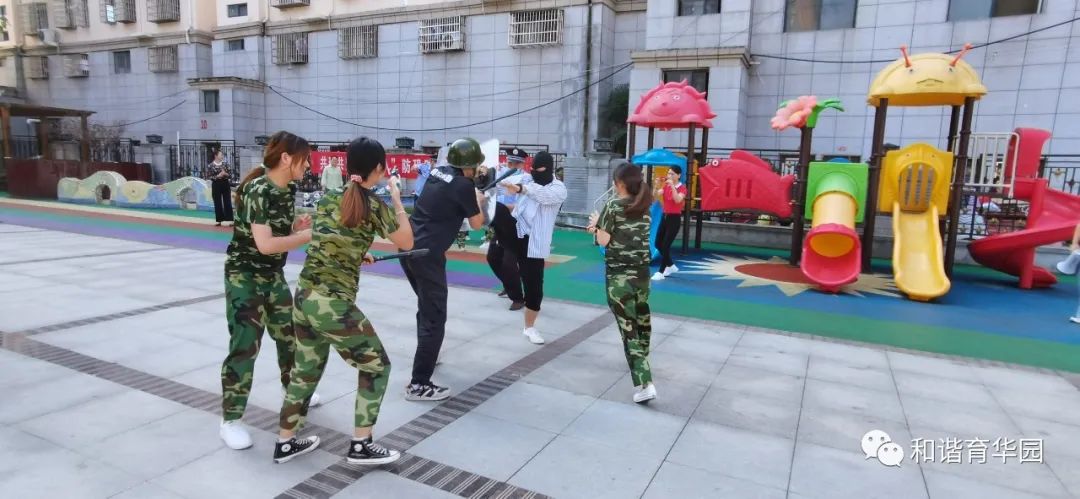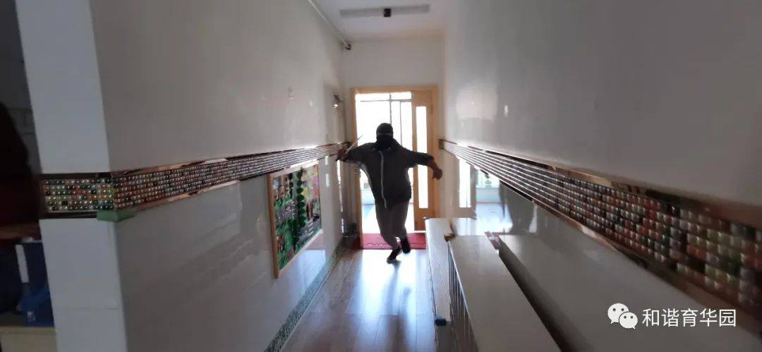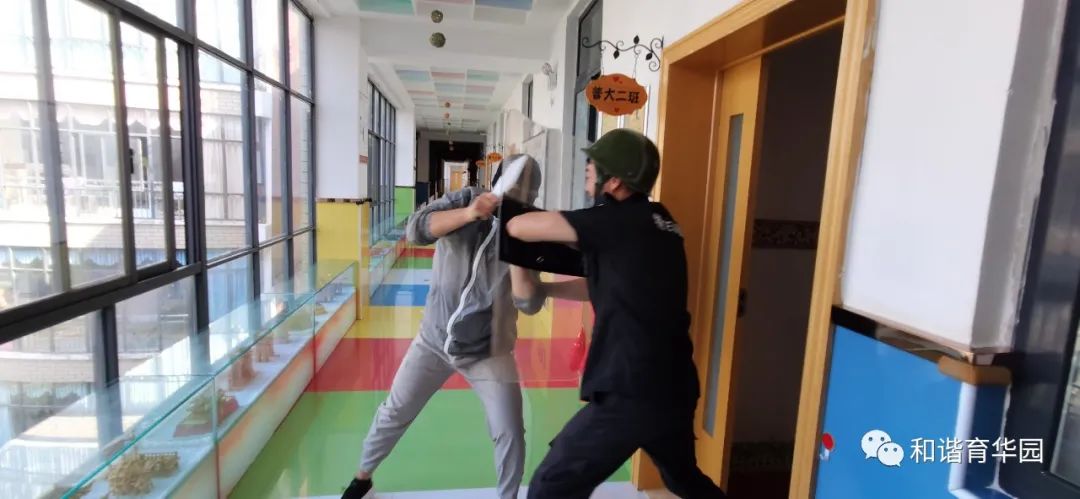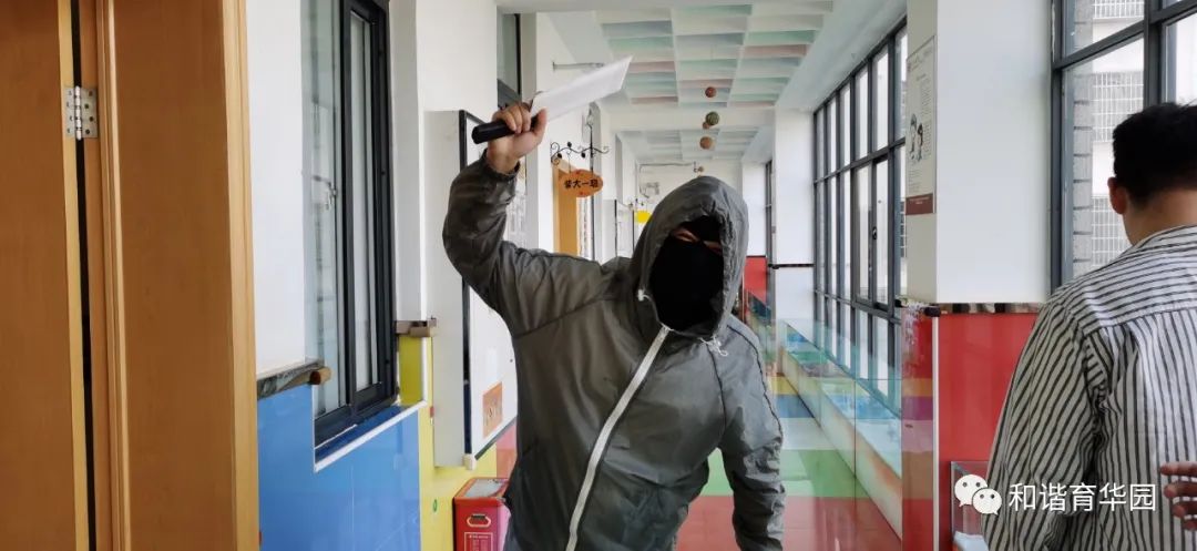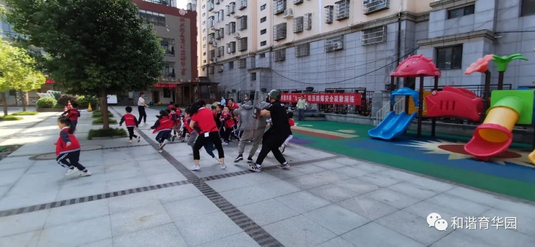 活动前幼儿园首先组织教职工认真学习安全制度、应急疏散方案,对各项应急措施进行了周密部署。演习前教师首先组织幼儿观看安全教育片《坏叔叔》,通过安全故事让孩子了解“如果遇到暴力事情时怎么办?” 引导幼儿知道遇到突发事件不要慌,有秩序地撤离可以避免危害的发生。认识逃生路线和方法,并通过室内外实战演习的两种方式,对幼儿进行防暴力知识与技能教育。演习中,当防空警报拉响,全体教师带领幼儿紧急集合做安全疏散,统一完成疏散后大院集合,准备进入户外防恐防爆演练。当“歹徒”扮演者强行闯入幼儿园,安保上前制止并报警。第一时间拉起了警报。全体教师立即停止教学工作,提醒幼儿不要慌乱。在老师指挥下,小朋友各自分散, 迅速跑向安全隐蔽的场所,有的躲在桌底下、有的床底下、有的躲在门背后、有的躲在大型玩具设施下,有的在老师保护下,迅速撤离。幼儿园护园队增援,与保安合力将“歹徒”在大门口用钢叉顶住,将“歹徒”降服,这时幼儿园宣布解除警报。演习结束后园长进行活动小结,要求全体师生进一步树立珍爱生命,安全防范的意识,努力做到遇到突发事件,沉着冷静,一切行动听指挥,不相互推搡。在各类活动中注意安全,加强安全知识的学习和体能的训练,遇突发事件保持冷静,积极应对。