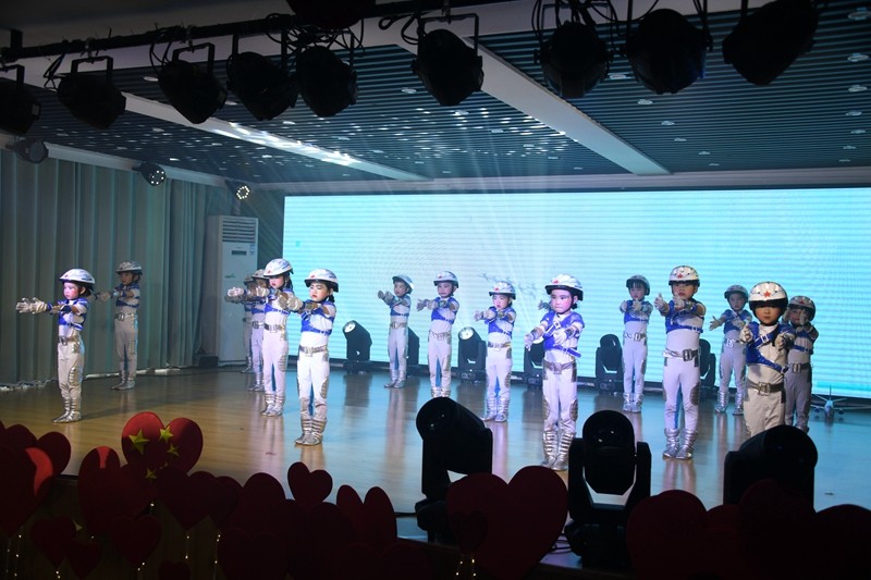 晚会分“童心飞扬、童心童趣、童心向党”三个篇章。开场舞“幸福生活跟党走”拉开了活动的序幕。情景舞剧《航天赞》、师幼互动《圆梦》、流行乐演奏《逆战》、音乐《踢踢踏踏我最能》《夕阳乐》、跆拳道《娓娓道来》、培育社《妙言童趣》、舞蹈社《灯火里的中国》、歌剧《心中的一条河》、《雷锋精神代代传》、《童心颂祖国》等节目轮番登场,舞台上小朋友们朝气蓬勃,舞台下现场观众掌声不断。一首首儿歌悦耳动听、余音袅袅,充满了对未来生活的憧憬和向往,一支支舞蹈精彩纷呈、美仑美奂,抒发了他们热爱党、热爱祖国的真挚情感,给现场观众带来了一场优美的视听盛宴。现场气氛十分热烈,动听的歌声和优美的舞蹈之间,掌声和叫好声连绵起伏。