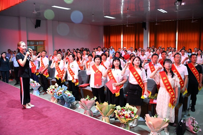 在讲党课环节,党支部书记、校长晏全林向大会作了《献礼党百年华诞,做新时代“四有”好教师》的精彩演讲。他首先向学校第一届最美教师表示了祝贺。接着,他简要回顾了党的光辉历史和发展成就,希望教师们从党史中汲取奋斗力量,永葆教育初心,在各自的岗位上,做好本职工作。树立终身学习的理念,教书育人,为人师表,谨记“学高为师,身正为范”的宗旨,争做“四有”好教师,全心筑力中国梦。在立德树人的教育中,教师要具备高尚的爱国情怀和道德情操,积极倡导核心价值观,让学生热爱中国共产党、热爱祖国、热爱人民,追求真善美,并尊重学生,理解学生,欣赏学生,用爱去感化学生。全体同仁要牢固树立“校兴我荣,校衰我耻”的荣辱观,群策群力,共同奋斗,塑造实验中学新的辉煌与荣耀,以优异成绩献礼中国共产党建党100周年。