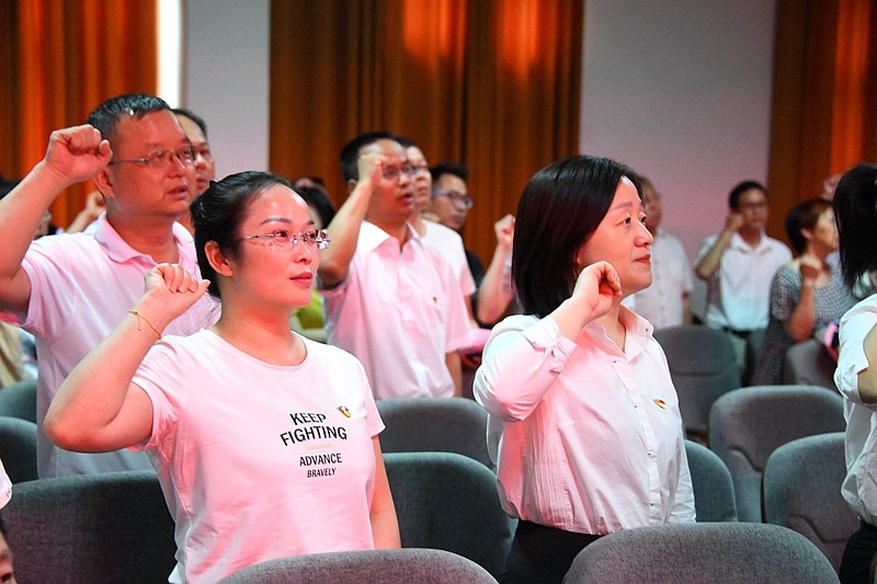 在作承诺环节,全体教师在叶阳艳老师的带领下重温了教师承诺誓词。
