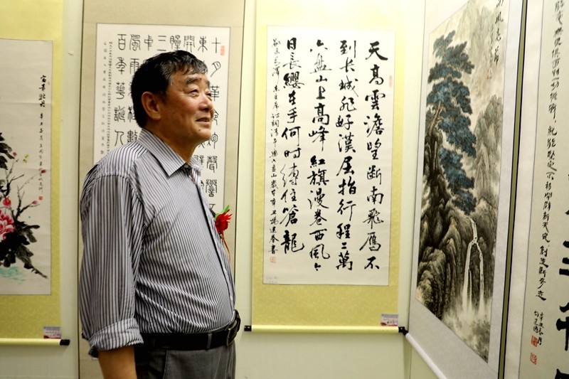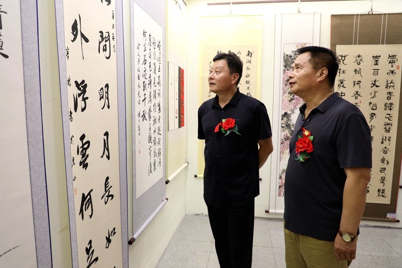 魏炳唐宣布开展后,与会同志一同走进懒悟纪念馆参观了此次书画、奇石作品展。参展的书画、奇石作品各展所长,各具特色,立意高远,创意新颖,有的选题于百姓生活,有的寄情于山水,有的写意于天中,风格多样,异彩纷呈,既体现了书画、奇石艺术性,又饱含了全县老干部对中国优秀传统文化的眷恋之情,浸润了对中华民族伟大复兴、实现两个“一百年”奋斗目标的热切向往。