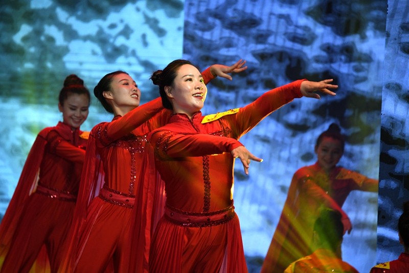 大合唱《在灿烂的阳光下》拉开了文艺汇演的序幕,随后,舞蹈《领航新时代》《灯火里的中国》《春暖》、情景剧《青春之歌》、歌曲《醉美潢川》《理想》《把一切献给党》《潢川颂》、古筝演奏《我的祖国》、朗诵《我骄傲,我是共产党员》、戏曲《中国脊梁》、武术等经过精心编排、形式多样的文艺节目逐一呈现,歌颂了党的丰功伟绩,唱响了社会主义主旋律,表达了对党的无限深情和对祖国的美好祝福,抒发了大家爱党、爱祖国、爱家乡的美好情怀。