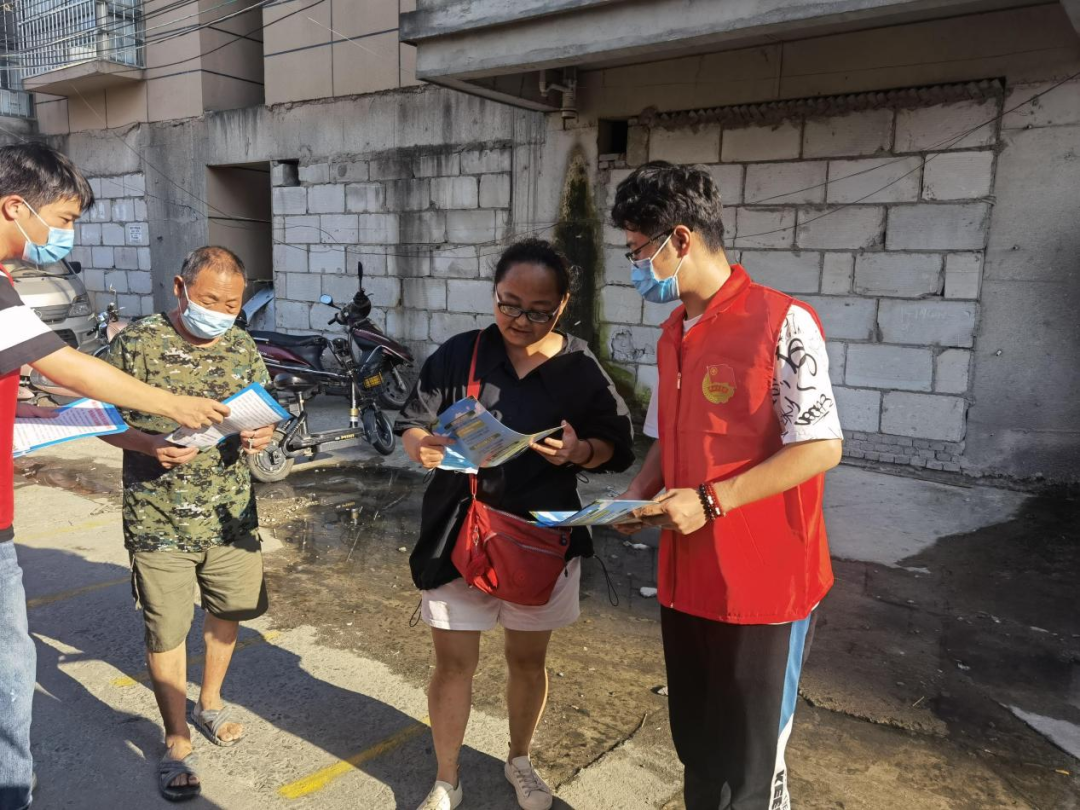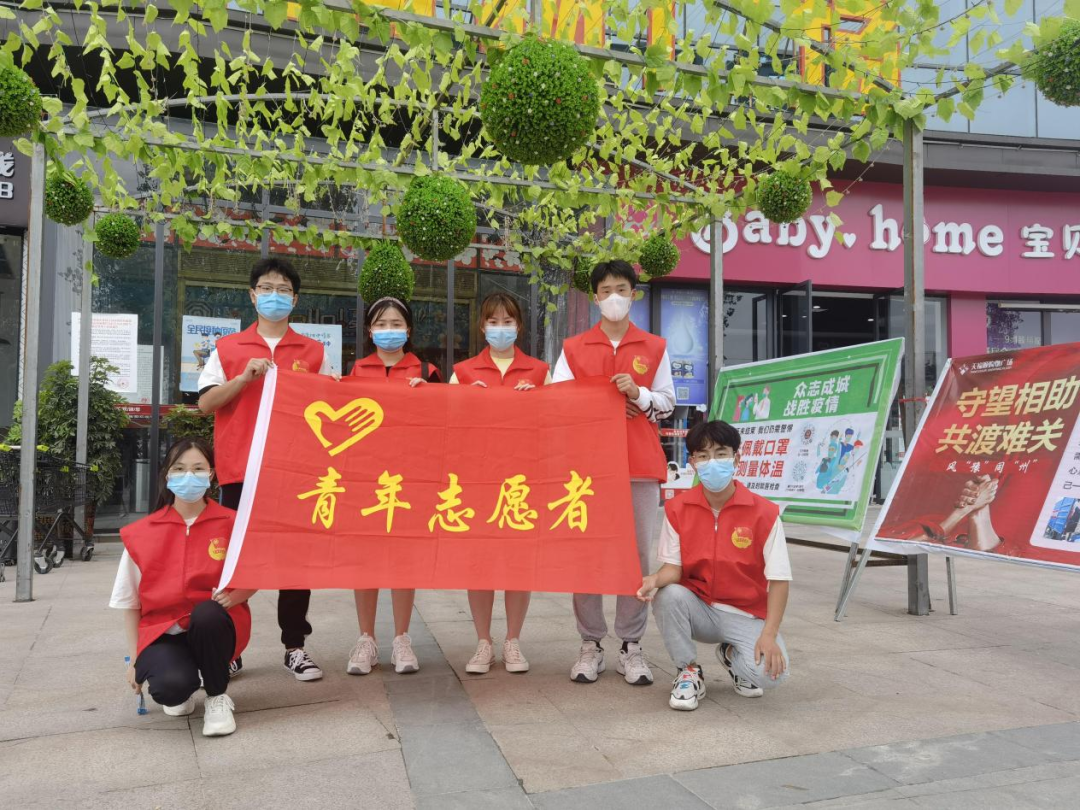 返家乡大学生志愿者在春申办文庙社区开展疫情防控志愿服务活动。