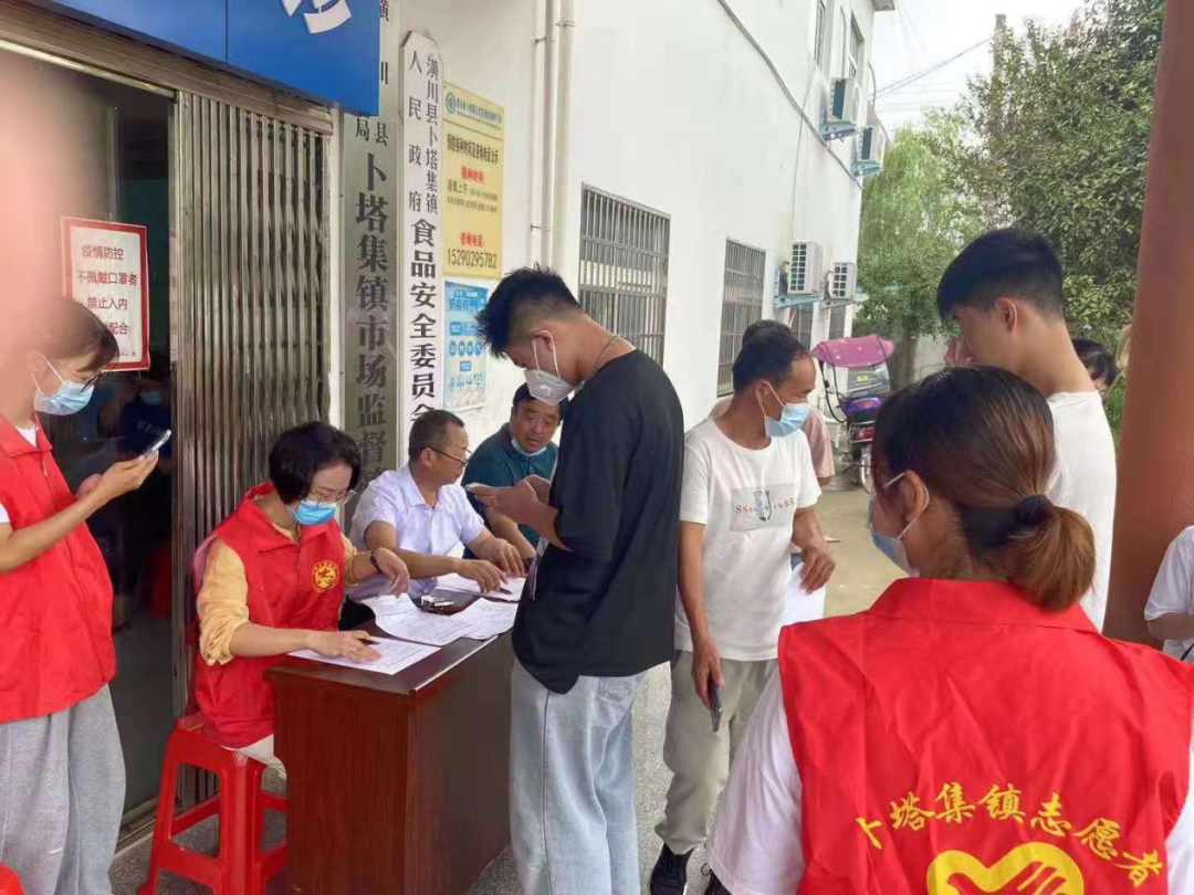 返乡大学生志愿者在卜塔集镇卫生院配合医护人员,开展青年学生接种疫苗的引导、登记、秩序维护相关工作。