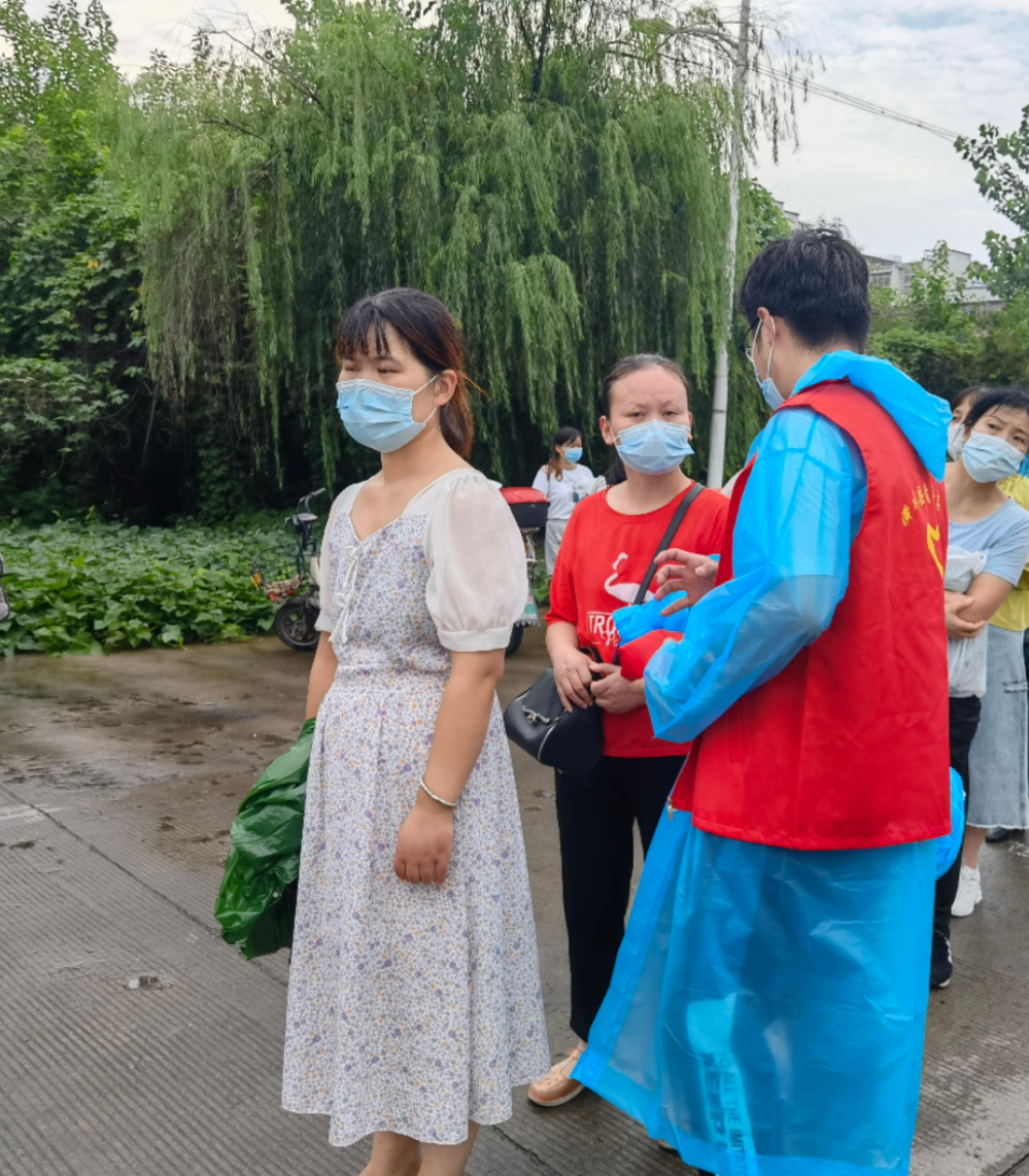 返乡大学生志愿者们准时到达活动现场展开核酸检测保障工作,他们身穿共青团青年志愿者红马甲,分成几个小组,分别负责维护现场秩序、人员疏导、交通疏导、核酸检测宣传等工作,确保核酸检测工作能有序进行。