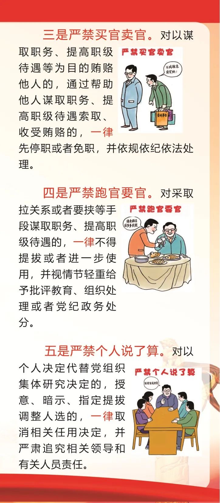 2021年1月,中央纪委机关、中央组织部、国家监察委员会联合印发了《关于严肃换届纪律加强换届风气监督的通知》,就严明地方领导班子换届纪律,明确提出了“十严禁”。全县各级党组织和党员干部要切实增强法纪观念和规矩意识,严格按照党章党规和有关法律法规要求,依法有序参与换届,坚决做到“十严禁”。党代会期间,县纪委监委将认真履行监督责任,聚焦问题、全程跟进、铁腕执纪,对拉票贿选、买官卖官、跑官要官等行为发现一起查处一起,坚决维护换届纪律权威,营造风清气正的换届环境。