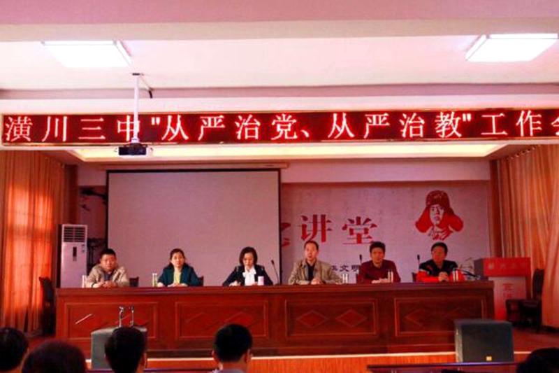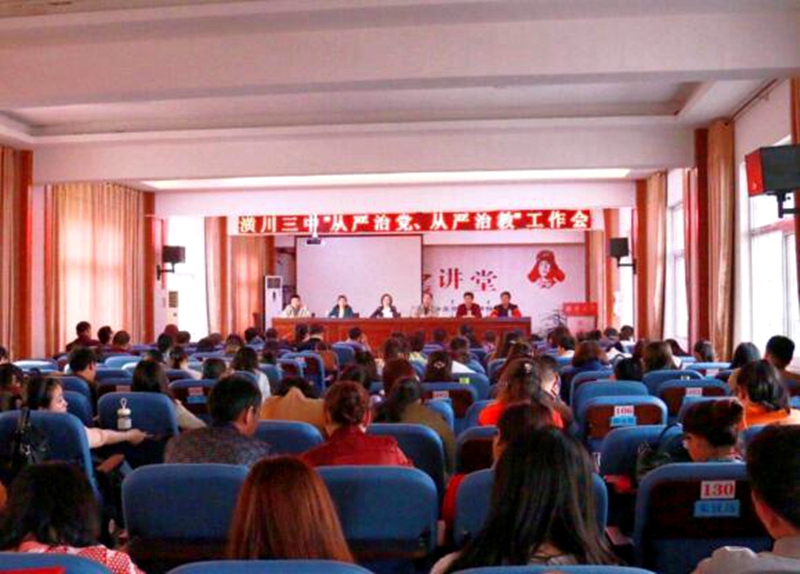 潢川网3月27日讯(熊少菊)3月26日,潢川三中在静远楼五楼会议室召开“从严治党、从严治教”专题会。赵晓虹校长出席会议并作重要讲话,支部副书记叶春染主持会议并作专题报告。