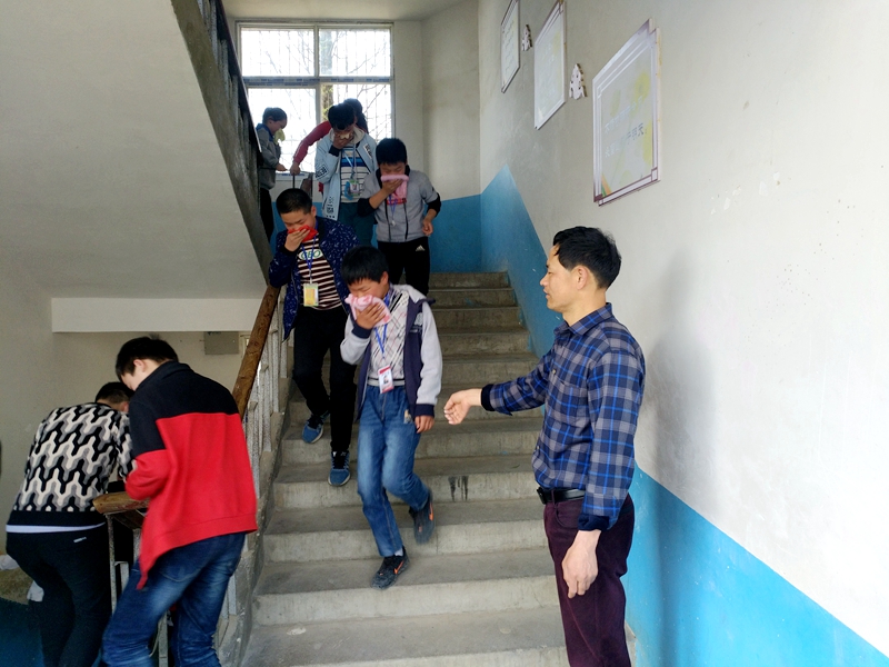 3月28日下午15:40分,警报声响彻了整个校园,按照事先制订的疏散路线和动作要领,实验楼、综合楼、办公楼的学生分别从三楼、二楼紧张而有序地撤离教室,按规定的路线快速到达集合地点。经查点人数,无一缺漏。从警报声响起到集合完毕,整个过程用时3分18秒,达到了预期效果。此次逃生演练活动班子成员全员参与,校长秦连江同志亲自现场指挥。通过本次安全疏散逃生演练活动,不但增强了学生的安全意识,也增强了学生自救和自护的技能,为后续的安全教育打下扎实的基础。