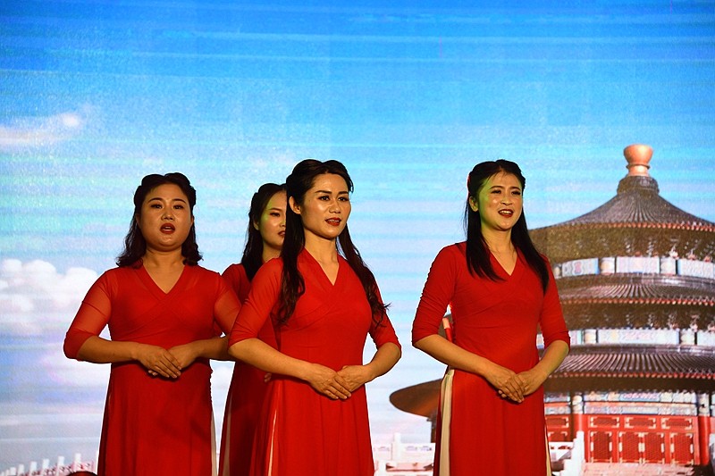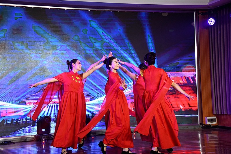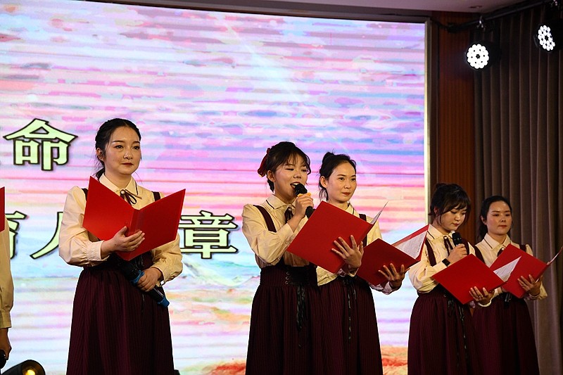 领导班子成员的诗朗诵及合唱《没有共产党就没有新中国》更是把活动推向了高潮,现场红旗招展、歌声嘹亮,这滚烫的旋律,如旗帜、如号角,使在场的人心潮澎湃,全场大合唱唱出了所有人的心声:实小人手牵手,不忘初心跟党走;实小人向前看,齐心协力谱新篇;实小人披荆斩棘,乘风破浪勇向前。