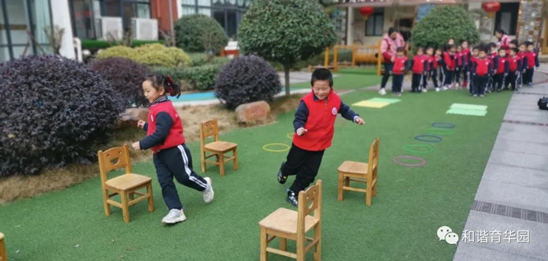 比赛前,护旗手带领大家一起唱国歌,为冬奥加油助力。随着裁判员的一声号响,结合《3-6岁儿童学习与发展指南》为幼儿设计的各项体能活动,在幼儿园操场各个赛区展开。运动项目比赛,本着人人参与,快乐共享的指导思想,融合了健体、益智、探险、游戏、闯关等诸多元素,共设置了十几个运动项目,《挑竹签》《送温暖》《坐地拔河》《单手乒乓》、《飞夺泸定桥》等。