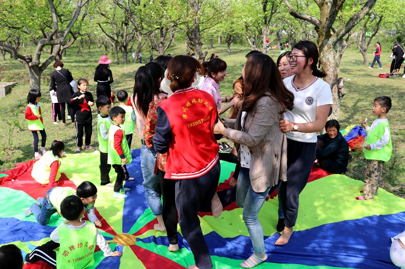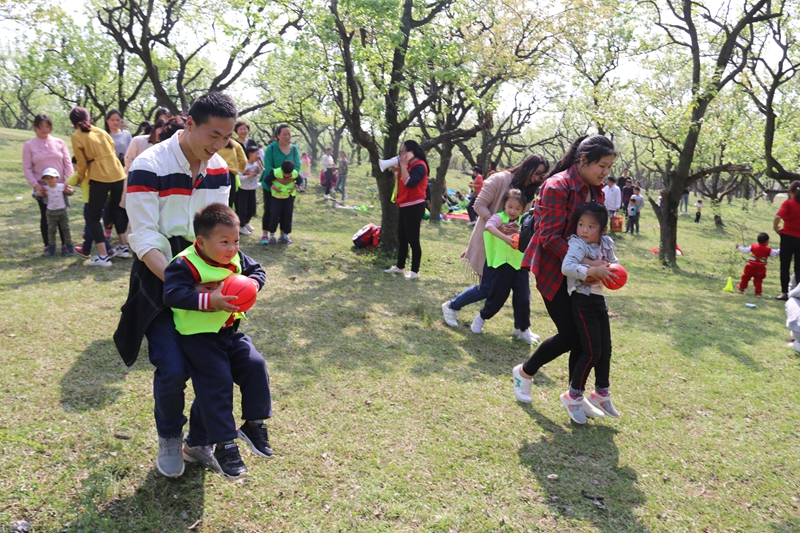 下午1点30分,孩子们在老师的组织下、家长的带领下欢快的来到桂花岭,下车后,通过走一走、看一看、闻一闻,与大自然零距离接触,尽情地寻找着大自然的“足迹”,感受春的气息。2点30分活动正式开始,老师们结合春天的主题,设计了丰富多彩的亲子游戏,孩子们个个精神饱满,在广阔的梨园中与家长们一起唱歌,跳舞,做游戏,孩子们玩乐的天性得到尽情的满足和释放。