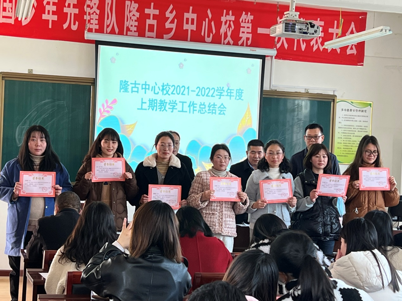 会上,中心校副校长黄喜明宣读《隆古乡中心学校关于2021-2022学年度上期教学常规过程管理中优秀教师的表彰决定》,与会领导为获奖优秀教师颁发了荣誉证书。紧接着,冯楼小学六年级语文老师何文静、吴庄小学六年级数学老师王晶晶、隆古中心小学六年级英语老师李莉芳、教导主任郑成红,分别分享自己工作中的经验、方法与感悟。