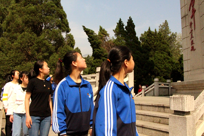 大家排着整齐的队列,跟随旗手,在纪念碑前庄严肃立。等待着祭奠仪式的开始。首先由学生代表将花篮献上,全体师生默哀一分钟,并向烈士纪念塔三鞠躬。短短的一分钟,那些被浓缩而远去的轰轰烈烈的悲壮的中国革命事迹回旋在每个人的脑海中,团体团员在纪念塔前重温入团誓词。书记黄遵强作重要讲话。我们凝望烈士碑塔,我们铭记烈士功绩。最后,每人绕着烈士之墓走了一圈,为烈士们献上最深的敬意,也为他们献上了自己最真挚的悼念。
