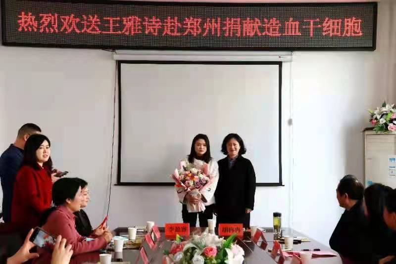 2022年3月2日,信阳市红十字会、潢川县政府、县委宣传部、县文明办、县卫健委、县红十字会、团县委、县妇联等单位联合举行欢送仪式,欢送王雅诗赴郑州捐献造血干细胞,并预祝她捐献成功,顺利凯旋。