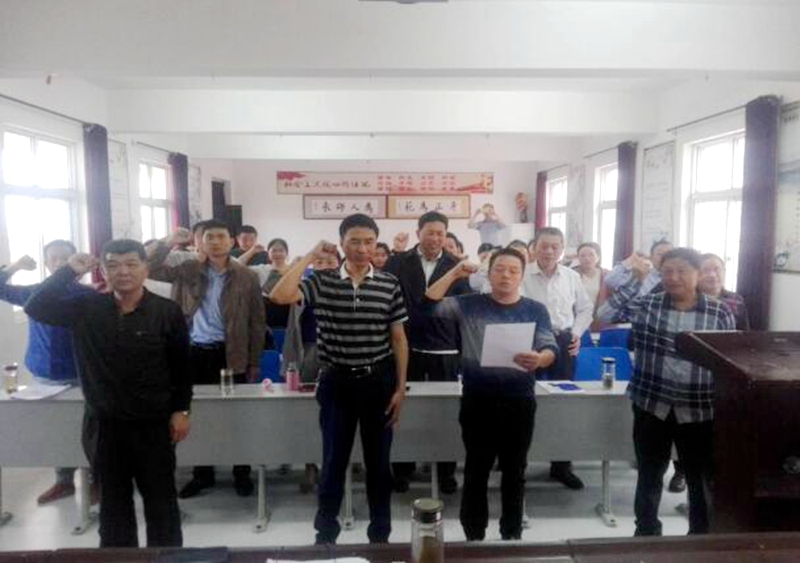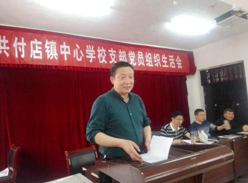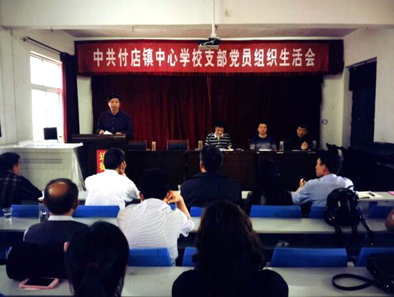 潢川网讯 2018年4月3日下午。潢川县付店镇中心校党支部召开了组织生活会。会上,支部书记陈国中带领大家讲了“聚力新时代,履行新使命”的主题党课,并传达了县委书记赵亮同志的《在全县党的建设系组织工作会议上的讲话》。副校长陈崇志传达了潢川县纪委县监察委派驻第13组组长毛恩军同志《在潢川县全面从严治党,2018年教育工作会上的讲话》。李成瑞同志介绍了2018年党费收缴情况。工会主席张友玉安排了网上祭英烈活动、关于开展“学习贯彻党的十九大精神网络知识竞赛”活动和2018年4月份“两学一做”学习教育工作。最后,支部副书记喻道明同志带领大家重温了入党誓词。