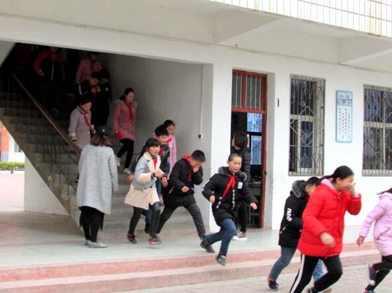 潢川县付店镇中心小学举行消防应急疏散演练活动