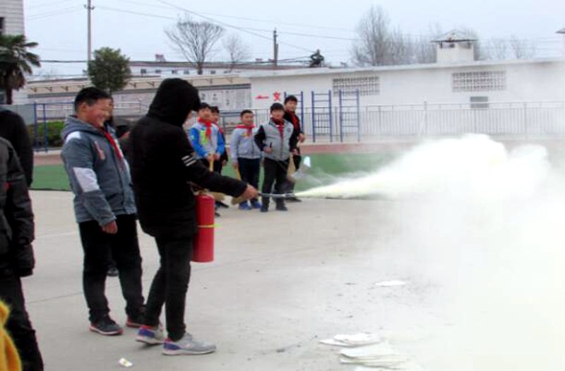 最后,中心小学分管安全工作的副校长马俊向师生演示了灭火器的使用方法。全体师生经过这次消防应急疏散演练,进一步提高了面对突发事件的应急自救能力!