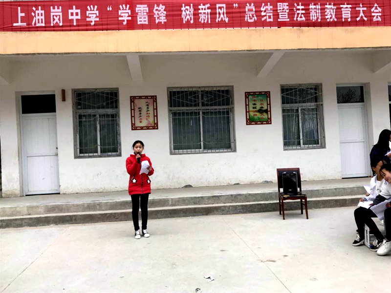 潢川网讯(李启明)为进一步弘扬雷锋精神,扎实有效推进学生素质教育;为强化青少年法制意识,预防和减少校园暴力、校园安全事故的发生,培养学生良好的道德品质和安全行为习惯。4月4日下午两点,上油岗中学全体师生齐聚教楼前,隆重召开了“学雷锋 树新风总结暨法制教育大会”。