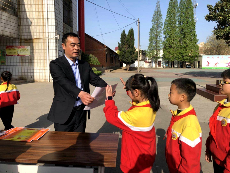 潢川网4月9日讯(冯晓婷)2018年4月9日上午, 潢川三小小学部全体师生共同举行升旗仪式暨第一阶段检测表彰大会。此次大会旨在表彰通过自身努力、刻苦学习,取得优秀成绩的学生。同时总结经验,发扬成绩,团结和动员全体学生以更加崭新的思想观念,更加饱满的精神状态,积极投入到今后的学习中去。