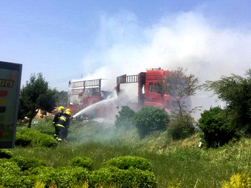 4月8日12许,潢川县公安局东城派出所接到报警称:潢川县开发区312国道中国石油一加油站旁边有一辆大货车起火了。火情就是命令,东城出所民警立即赶赴现场,到现场后发现一辆大货车正停在312国道路边,货车对面是居民区,货车旁边就是一个加油站。当时现场还有一些居民围观,货车右后轮胎正在着火,火势已蔓延至整个货车车身,现场浓烟滚滚,情况十分危急。民警一边疏散人群,一边封锁道路,禁止来往车辆通行,同时组织加油站工作人员参与救援工作。与此同时,消防队员也迅速对火势进行了扑救,一个半小时后,火势被彻底扑灭。民警与司机再次检查该辆货车,是否存在其他隐患,并主动联系附近修理部。由于扑救及时,火灾没有造成人员伤亡,货车司机对民警和消防官兵的全力救助表示非常的感谢。