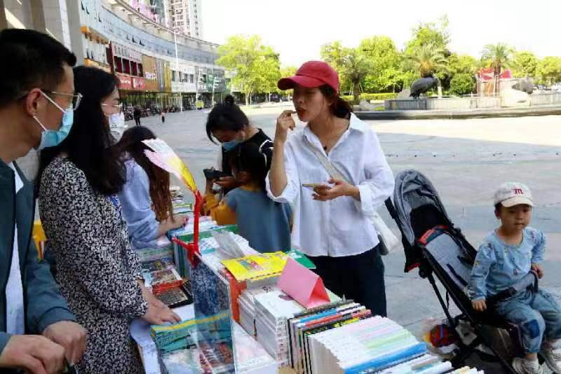 潢川网讯(任恩光 冯清正 梁蕊 张华蕊)为更好地掀起读书热潮,增强大众阅读意识,养成读书好习惯,共建书香潢川,值27个“世界读书日”当天,由潢川县公之益志愿服务协会、潢川县新航社会工作服务中心和潢川文清教育培训机构联合行知慧公益图书馆--信阳众智领航教育科技有限公司潢川华夏乐读陪伴中心,共同主办的“图书巡展助力潢川全民阅读”活动在清水湾门前广场进行,活动当天吸引数千名读书爱好者、尤其是青少年及其家长参加。