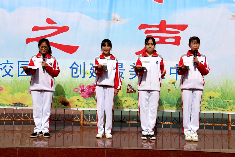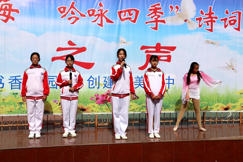 潢川三中举行“漫游诗海、吟咏四季”系列活动之“春之声”诗词诵读大赛