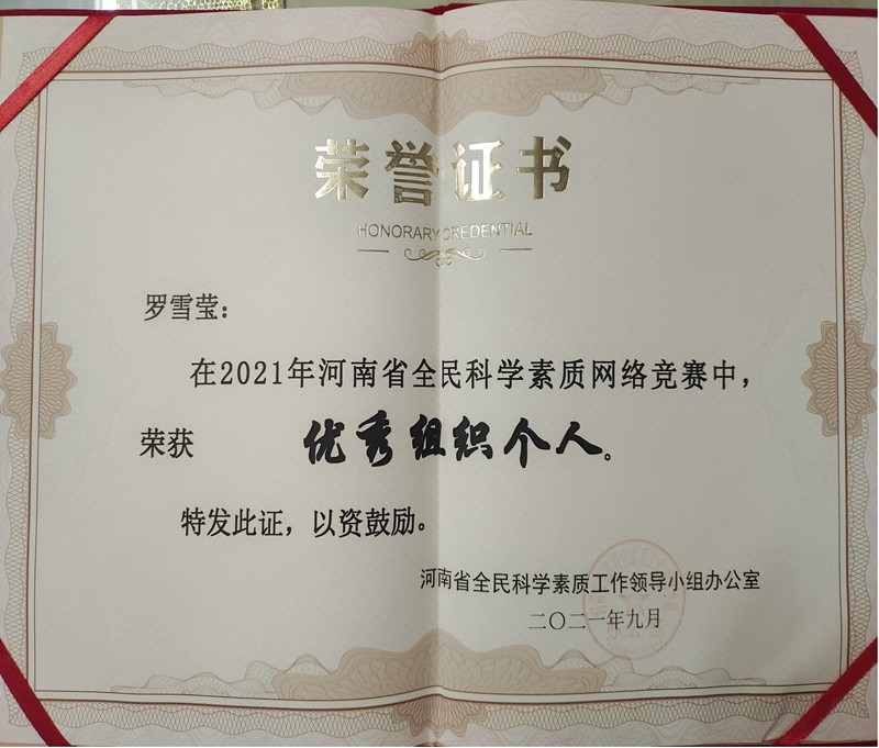 罗雪莹同志主抓我县科普工作和全科素外宣工作。积极配合出色完成了县科协二届二次、三次全会、中国老科协学术报告会、全国科普日、全国科技工作者日、中国流动科技馆巡展潢川站启动仪式等活动等相关工作。能够将科普工作与青少年科技科普教育有机结合,深入开展科普“进校园”活动,将学校社团作为科技志愿服务的平台载体,成功打造了以“潢川县逸夫小学”为代表的省级科普示范学校,积极申报了以潢川二中为代表的8所“河南省科学体验示范校”;成功申报河南省科协i科普服务项目--潢川县i科普科技志愿服务项。