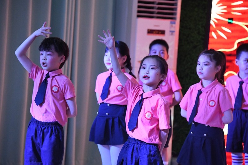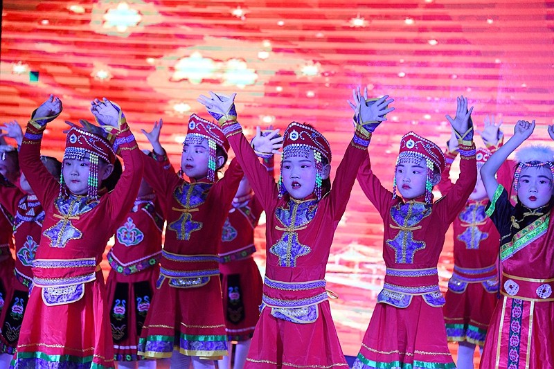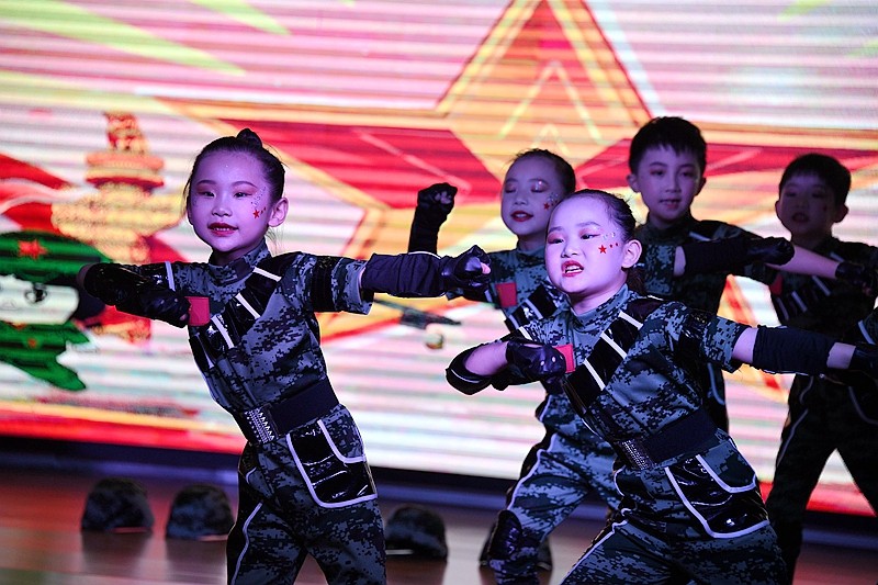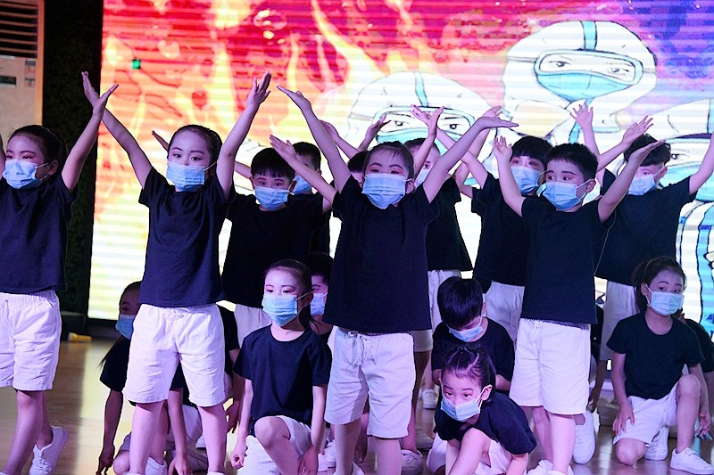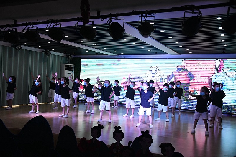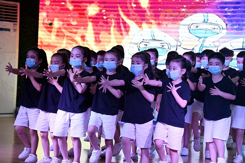 师幼用心演绎的《御风行》《以你为荣》再现了抗疫抗洪的一个个感人瞬间,讴歌了乘风破浪的时代精神。为弘扬好思想,学习好榜样,幼儿园对武警、军人家庭进行了慰问表彰;并由经历“7 20”洪水灾害,参加“省级案例答辩分析大赛”的姜海玲老师做工作感言,让先进典范和感人事迹成为大家学习前行的力量。群舞助兴、腰鼓助力、低吟浅唱,大班孩子们深情朗诵《毕业诗》,全体高歌礼赞新时代,活动在《万疆红 中华美》打击乐谢幕礼中圆满落幕。