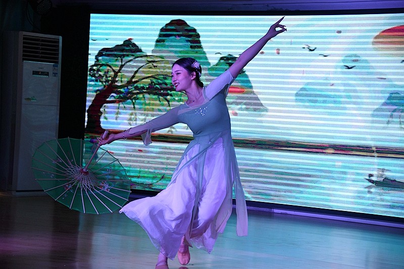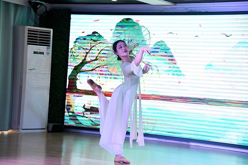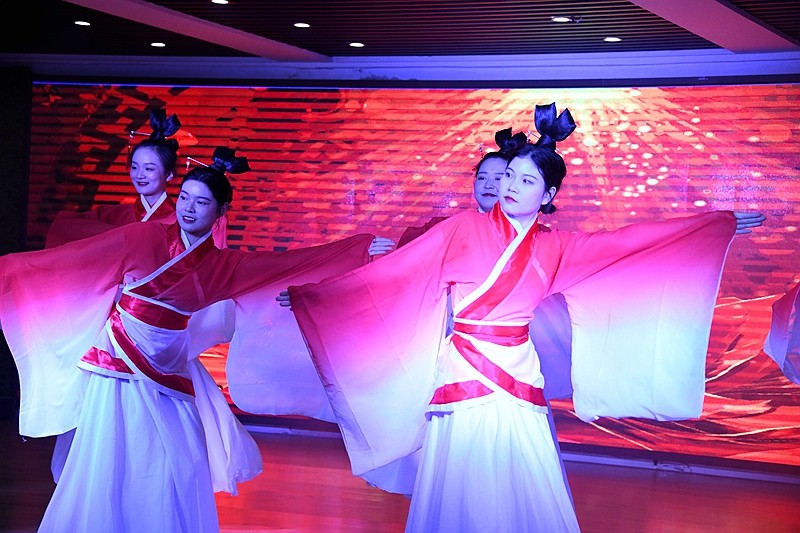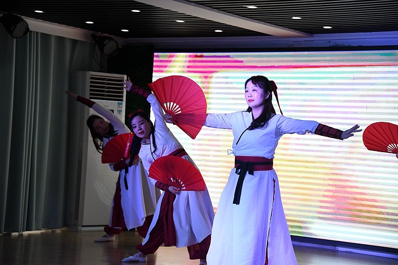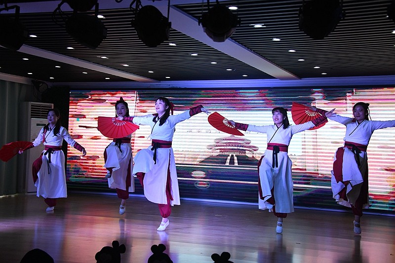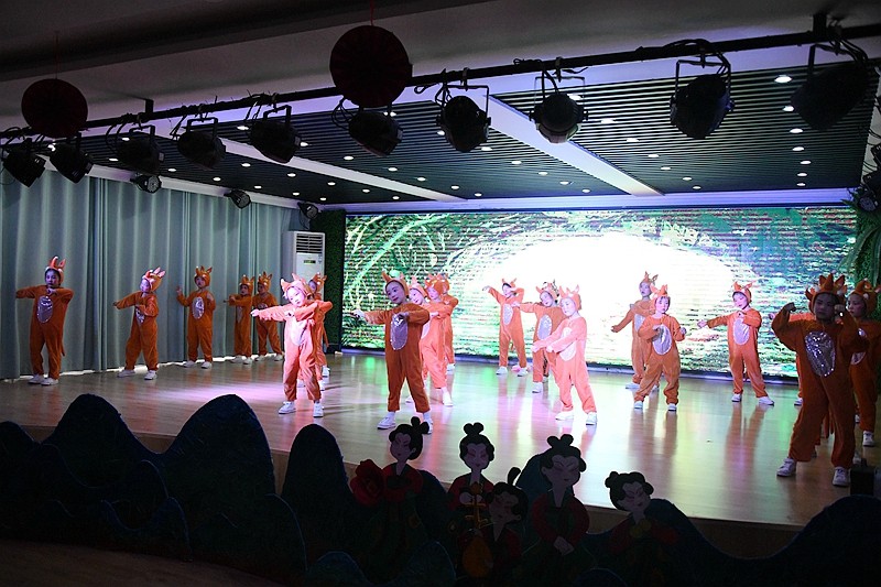 一群梳着高髻、穿着唐装、手持各种国风古典乐器的孩子们,演绎了极具中原文化气息的《唐宫夜宴》,在舞台上翩翩起舞的孩子们扮相俏皮、神采各异、动作惟妙惟肖,仿佛穿越古今、梦回大唐,给大家带来全新的视觉盛宴。教师舞蹈健身社团带来的《霓裳羽衣曲》《烟雨行舟》《字正腔圆》、手偶小剧场《快乐的节日》让现场忍俊不禁、培语社的新段子《核酸小记》将舞蹈、瑜伽、文字等元素整合一体,并用传统艺术相声的表演形式,充分彰显了教师扎实的文学功底和艺术素养,将活动推向高潮。