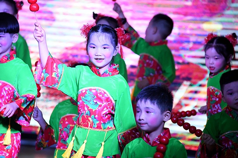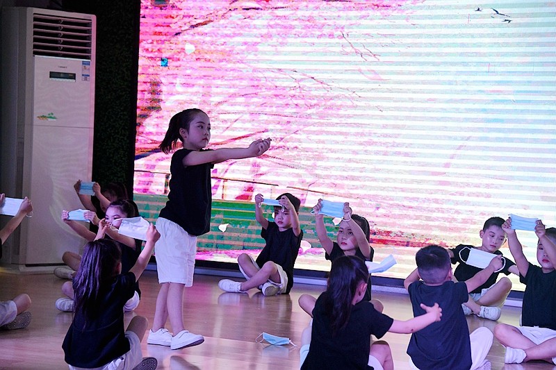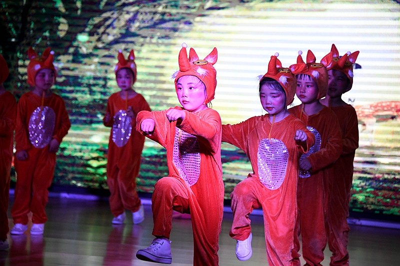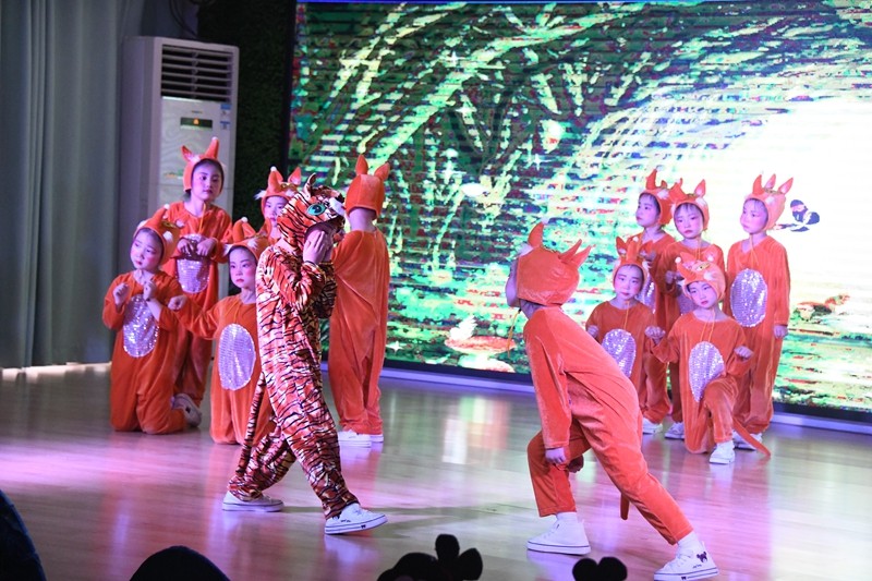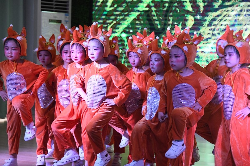 活动分为“诗礼乐 歌舞兴 颂华章”三个篇章。一首国风雅韵《君子谣》让师幼与高尚对话、与智慧碰撞,千年流传的诗文在孩子们的吟诵中生生不息,彰显中华经典之气魄。《非常乐之声》《山河鼓舞》铿锵有力的乐声,敲打出喜迎盛世的激情,象征着冬奥运动健康精神的“冰墩墩”也前来为活动加油助威。《群星闪耀》《红军小乖乖》将红色经典融入晨练晨操,让历史的记忆在幼儿园一日流程中留下烙印。《冰雪奇缘》《狐狸闯虎家》将童趣的绘本故事用音乐剧的方式呈现,孩子们诙谐稚嫩的表情、天真的表情展现出了绘本教学的成果。代表食育新品创作的《冰糖葫芦》在灵动的民俗舞中,让美食与美育同屏,让美味与品位同在。