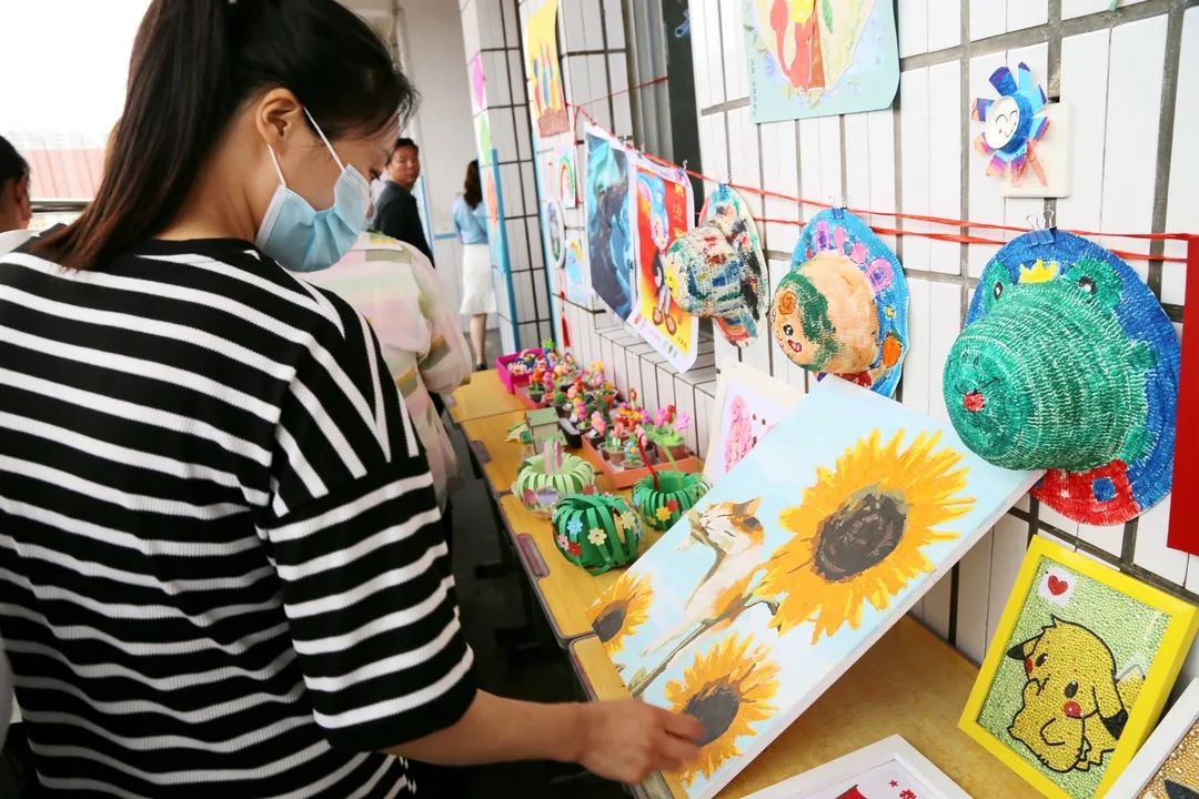 活动中,各分会场向家长们展示了鼓号队、武术、音乐、剪纸、编程、足球、田径、美术、健美操、书法十大社团活动,各社团开展得有声有色,孩子们兴趣浓厚,神采飞扬。手势舞、经典诵读、手工制作、十字绣、花样跳绳、合唱、故事表演、钻石画等几十种丰富多彩的兴趣特色活动正火热开展,孩子们满满的成就感溢于言表。在施展才华的舞台上,老师们用心指导、用情陪伴,孩子们的兴趣爱好得到充分“滋养”。学校真正做到了美育扬风采,体育铸精神,智育展才华,科技慧未来,艺术谱华章,好一个五彩缤纷的美丽小世界!