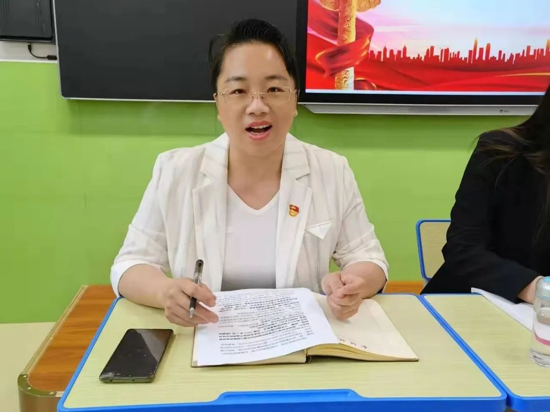 最后,党支部书记、校长雷后现上《在担当作为中做一名合格的共产党员》党课,从“为什么要强调担当作为,共产党员如何做到担当作为”两个方面展开,要求全体党员干部要时刻将党性记在心中,发挥模范带头作用,坚持做到品德高于人、作风严于人、行动先于人,将党员干部身份在工作中亮明;要见贤思齐,开拓创新、担当作为、干在实处、走在前列,使党组织的战斗力在工作中提升。他希望大家在新的赶考之路上,以百折不挠的干劲儿,使潢川三小这所百年老校在即将迁入新校区的新征程上交出优异答卷。