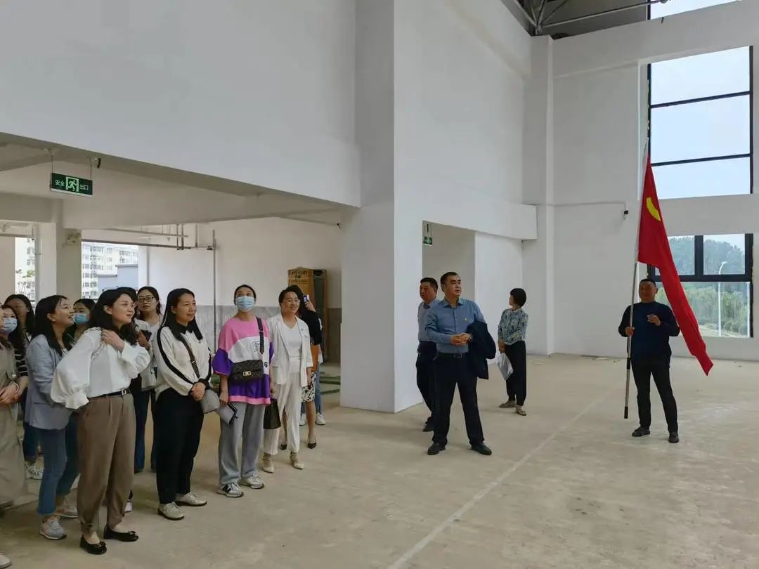 活动最后,全体党员干部追随党的旗帜移步新三小校园参观,新校区强烈的现代化、标准化气息扑面而来,粉墙黛瓦的园林化校园向我们敞开怀抱。是喜悦,是兴奋,更是翘首期盼,早日归来。