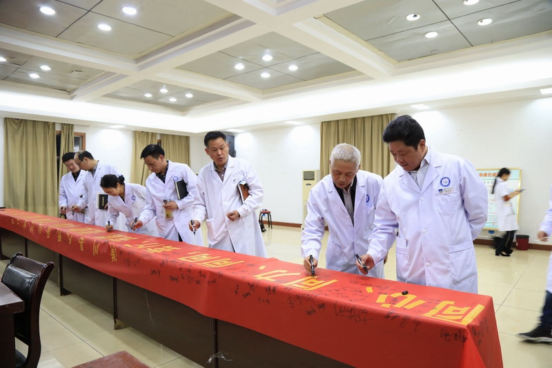 院长杨怀玉在会上与各位班子成员、相关科室逐一签订了创建二甲综合医院承诺书,并做了热情洋溢的动员。杨怀玉院长指出,创建是一场思想革命,要触及灵魂深处,让思维在创建中浴火重生;创建是一场行动革命,要向几十年形成的陋习宣战,让行为在创建中脱胎换骨;创建是一场苦难的革新,要向很多僵化的藩篱开炮,让机制在创建中落地生根。并强调,在这攻坚的几十天时间里,我们还有很长的路要走,还有许多要做,还有很多问题要解决,我们要坚定信心,一鼓作气,直捣黄龙!我对潢医这个团队充满信心,潢医这个团队是一支高傲的团队,是一支不甘人下、不甘落后的团队,且在关键时刻能拼能上、善作善成、不达目的绝不收兵的团队,对这样一个团队,我满怀希望,我信心百倍!既然蓝图已经绘就,既然目标已经确定,我们即刻再次出发,那就披荆斩棘,一路风雨兼程,绝不回头!我们要有上天揽月的豪气,有欲下五洋捉鳖的霸气,过关斩将,践行三千越甲可吞吴,不破楼兰终不还的豪迈,吹响二甲创建的集结号,满怀期望的迎接终评审。