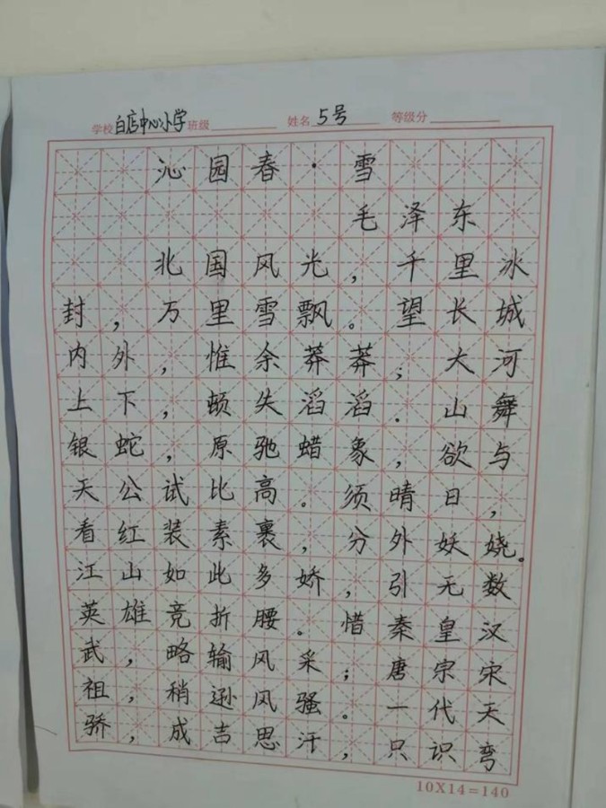 潢川县白店中心校举行教师书写比赛
