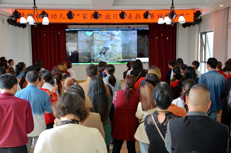 早上8时许,该幼儿园教师于校门口迎接幼儿及各位家长进入园区,并依次与幼儿家长做了简单的交流,让家长们初步了解幼儿在校状态。早餐后,教育教学课程开始了,课上,教师安排了手指舞、钢琴歌曲、小舞蹈等互动小游戏让家长和幼儿一起参加。课后,各班教师有条不紊的引导幼儿及家长步入操场做早操。早操过后,园长安排家长们到多媒体报告厅参加了美拍大赛颁奖活动,此次活动分别颁发了三等奖五名,二等奖三名,一等奖一名,并为得奖的幼儿颁发了奖杯及现金红包等奖品。颁奖典礼后,教师带领家长及幼儿在操场上一起开心的做了互动小游戏。随后,园区安排家长及幼儿一起共用午餐。
