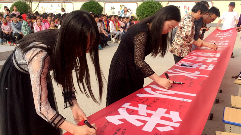 最后,教师、家长及学生代表在“安全第一,珍爱生命,预防溺水,从我做起”的横幅上郑重地签下了自己的姓名。