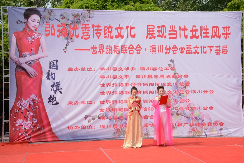 近年来,世旗潢川分会在世旗总会和信阳传统文化总会的具体指导下,以传承和弘扬中华旗袍文化为已任,艺术性地把旗袍服饰与文学艺术表演形式巧妙结合起来,通过深入挖掘典雅秀美的“和谐文化”、“时尚文化”、“高雅文化”和“群众文化”,融合了诸多社区文化元素,在潢川城乡唱响了一曲社区文化之歌。