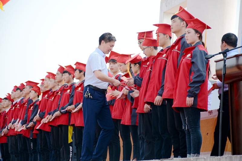 同学们在学生代表高二(10)班韩淑娜同学的带领下,进行了庄严的成人宣誓,喊出他们铿锵的成人誓言。最后,同学们戴着成人帽,身穿校服,在家长的陪伴下,以饱满的激情,踏上红地毯,步入“成人门”,踏上“成才路”向自己的梦想进发。