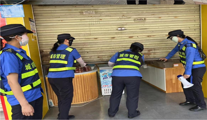 尽锐出战、全力以赴。在工作中,城管局把疫情防控工作当做党员干部面对困难敢不敢上、遇到危险敢不敢冲的试金石,明确提出能者上、庸者下的口号。广大干部职工顶烈日冒酷暑,面对风险逆行而上。执法大队159人参与卡点执守,其中66名队员24小时值守在城区外围11个卡点上,56人坚守在封控区(44人守管控区卡点,12人深入封控小区内摸排人员信息,保障群众生活。)。环卫所,抽调16名卫生队员到封控区开展卫生保洁和环境消杀,抽调 8人专门清运封控区垃圾;抽调6人到隔离点开展卫生保洁,其余人员照常开展卫生清扫保洁、垃圾清运,城区消杀,做到卫生质量不降低,垃圾日产日清。垃圾场安排专人协助处理全县核酸检查点垃圾处理。全局其他人员除了单位值班人员外,全部就近下沉到社区开展志愿者服务。