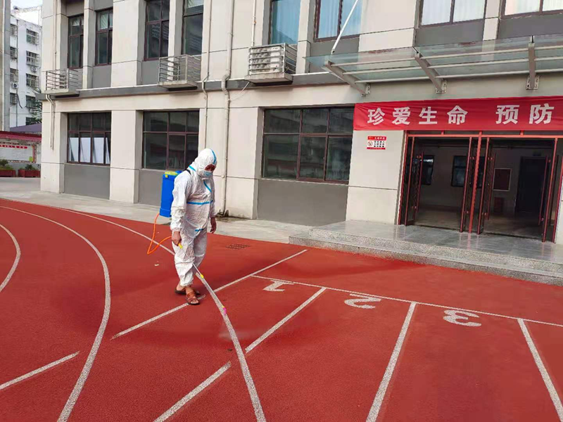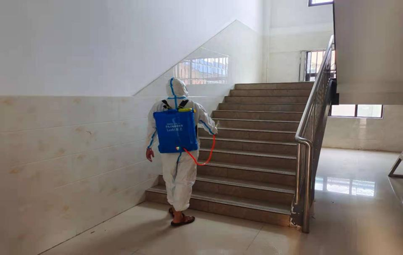 最后,在消杀演练过程中,后勤人员再次对学校的走廊、教室、垃圾筒、卫生间等公共区域进行全方位的消杀。