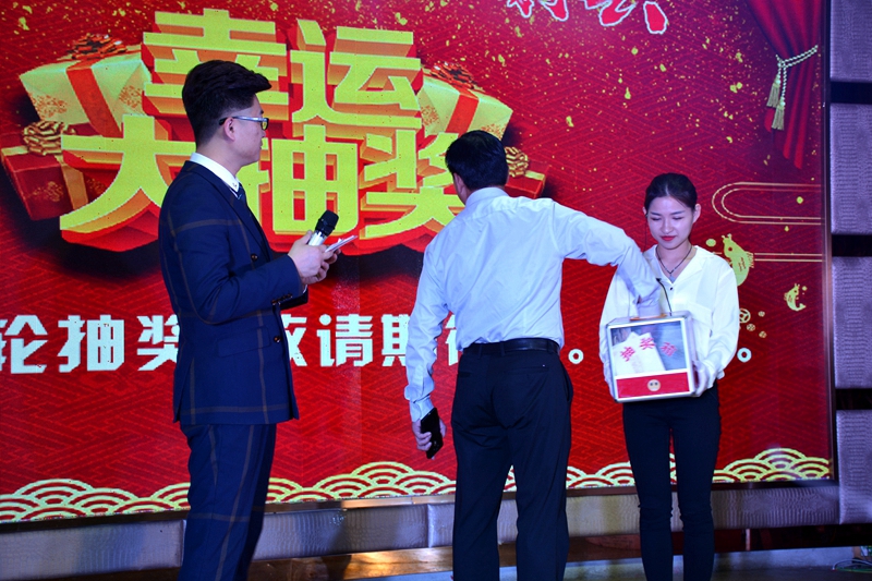 感恩活动在黄河梦的宣传片,聚视、听觉震撼的灯光秀暖场后,震天的龙鼓声中拉开了感恩答谢会的序幕。首先,董事长简茜上台致辞,她代表黄河梦主题酒店全体员工感谢受邀各界嘉宾的到来,感谢社会各界对酒店的关心支持,并表示酒店将会一如既往地用一流的设施、优质的服务,为新人们打造永志难忘的梦幻婚礼。接着,进行了西式婚礼秀、歌曲演唱、婚纱走秀、中式婚礼秀、团队文化展示、舞蹈等精彩的文娱活动。现场,主办方还进行了激动人心的抽奖,特别拿出数量众多、价值可观的奖品酬谢所有嘉宾,让与会者应接不暇,惊喜连连。