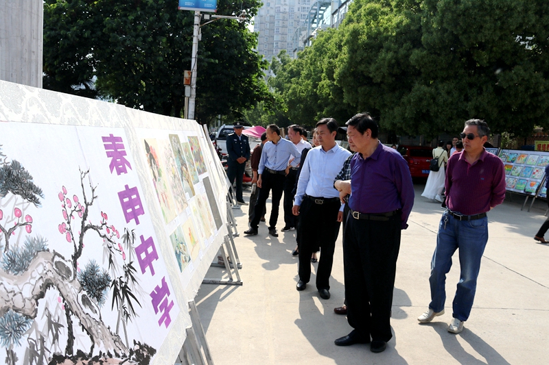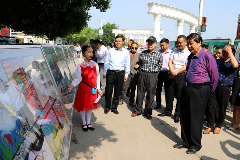 潢川网5月8日讯(瓮启兵 王婷婷)为促进学校艺术活动的开展,提高学生文化艺术素养,增强学生爱国主义精神,培养学生感受美、表现美、鉴赏美、创造美的能力,为期一天的2018年潢川县中小学艺术节书画展于5月8日在县政府喷泉广场举办。县四大家班子领导及县直有关单位领导参观了展览。