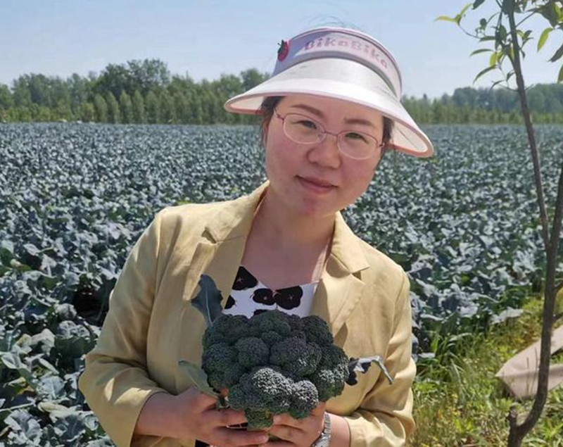 潢川一中驻传流店肖寨村第一书记李润芝为村民卖西蓝花