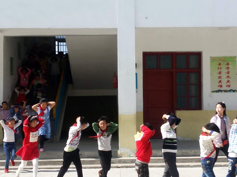 下午第一节课,各班班主任先在教室普及地震避险相关知识。三点半,学校用音响系统响起地震警报声。校领导宣布立即启动地震应急疏散安全紧急预案,并通过广播系统向全校师生下达紧急疏散命令。各班班主任在接到命令后,第一时间赶到教室,首先安抚学生情绪,要求学生按地震应急疏散要领执行;随后指挥和组织学生迅速从教室撤离,并按照预定的线路疏散。其他教师听到警报后,也迅速到达各自岗位负责学生疏散过程中的安全,指引学生及时正确地逃离到“安全区域”,保证学生全部安全疏散。