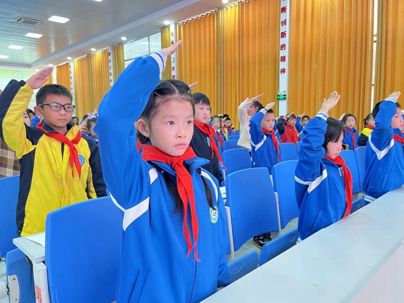 随后,鞠佳羽同学和徐思琪同学分别代表新老队员发表感言,表达出少先队员的自豪和喜悦,并立志争当时代好队员,以红领巾的名义时刻准备着,为美好的梦想插上翅膀。