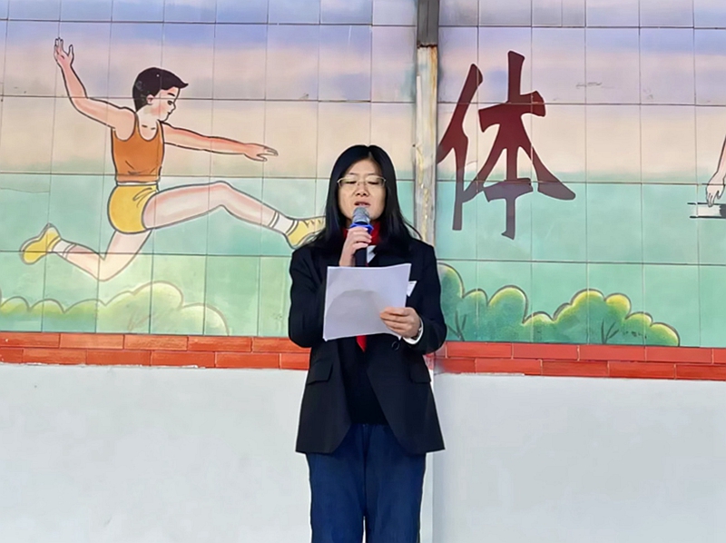 大队辅导员曹凤梅宣读新队员名单