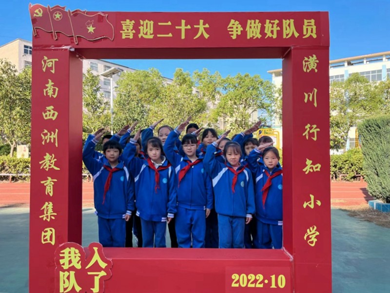 潢川网讯(方永昶)在党的二十大即将召开之际,为深入贯彻习近平总书记“用实际行动把红色基因一代代传下去”的精神,增强少先队员少先队小主人、祖国建设小主人的意识和责任感,引导队员关注国家发展、关注社会建设、关注少先队集体。10月12日,河南西洲教育集团潢川县行知小学举行“喜迎二十大 争做好队员”主题队日活动暨新少先队员入队仪式。