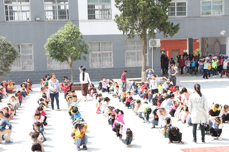 上午10点10分,“地震警报”信号响起,全体学生在老师的指导下,迅速护头、原地躲藏;随着第二遍警报声的响起,各班同学在老师的带领下双手抱头、猫腰前进,安全有序的撤离到操场,全程用了2分54秒。整个演练过程井然有序、动作迅速,无意外伤害事故的发生。